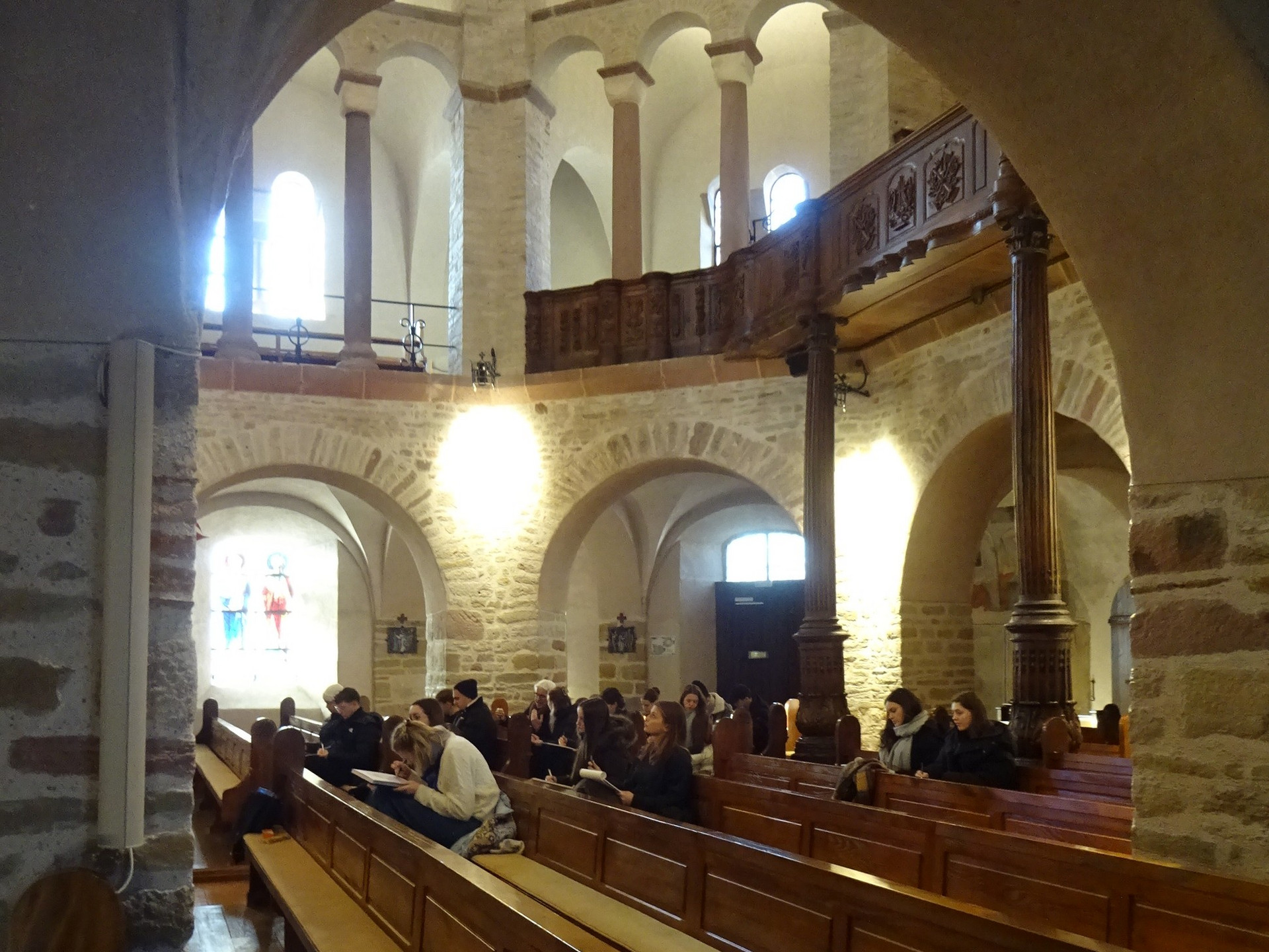 Die Exkursion führte in die romanische Abteikirche von Ottmarsheim und in das Museum Unterlinden in Colmar. Die Studierenden haben an beiden Orten Übungen im Freihandskizzieren durchgeführt. Sie wurden von Prof. Frank Hovenbitzer und dem Lehrbeauftragten Jürgen Moser unterstützt und begleitet.