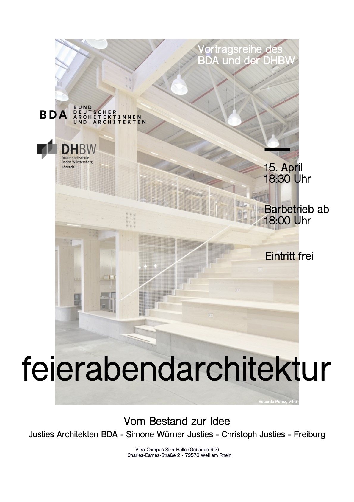 15. April // 18:30 Uhr // DHBW Lörrach - Vitra Campus // Vortragsreihe des BDA und der DHBW Lörrach